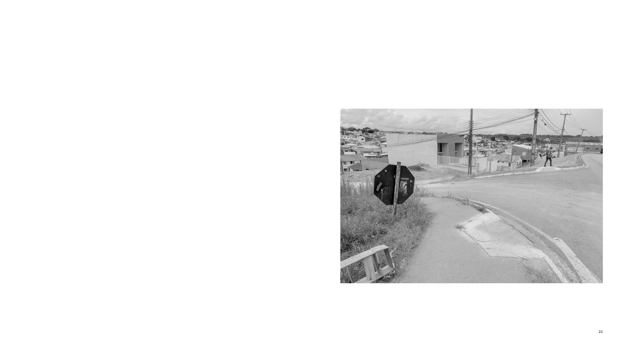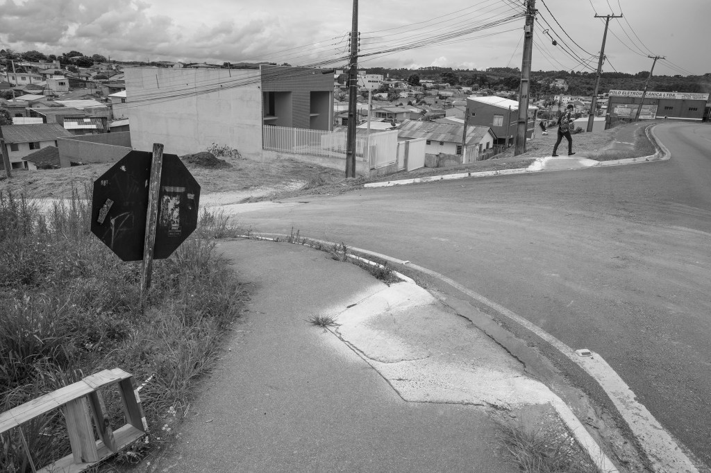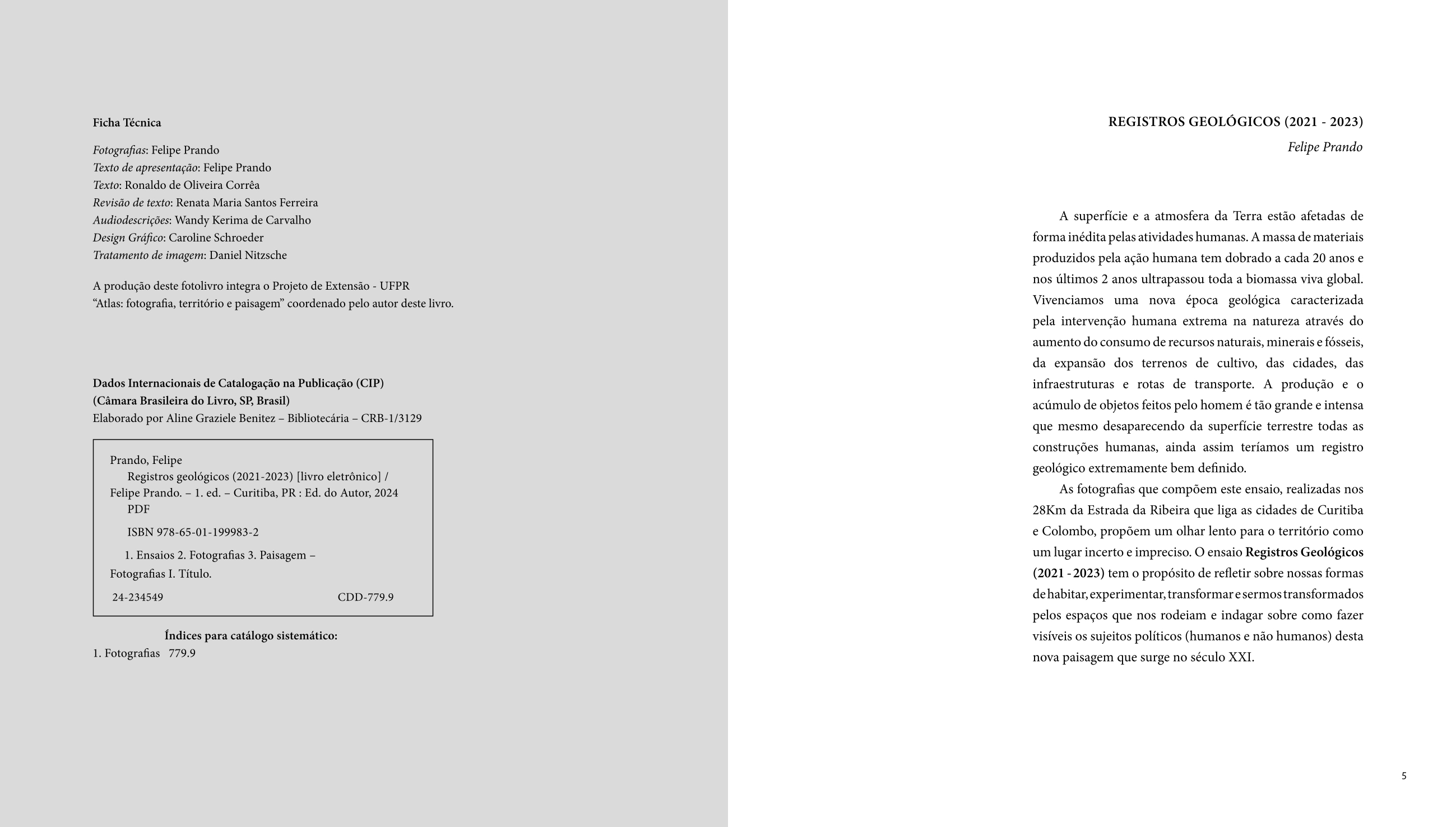 As fotografias que compõem este ensaio, realizadas nos 28Km da Estrada da Ribeira que liga as cidades de Curitiba e Colombo, propõem um olhar lento para o território como um lugar incerto e impreciso. O ensaio Registros Geológicos (2021-2023) tem o propósito de refletir sobre nossas formas de habitar, experimentar, transformar e sermos transformados pelos espaços que nos rodeiam e indagar sobre como fazer visíveis os sujeitos políticos (humanos e não humanos) desta nova paisagem que surge no século XXI.
