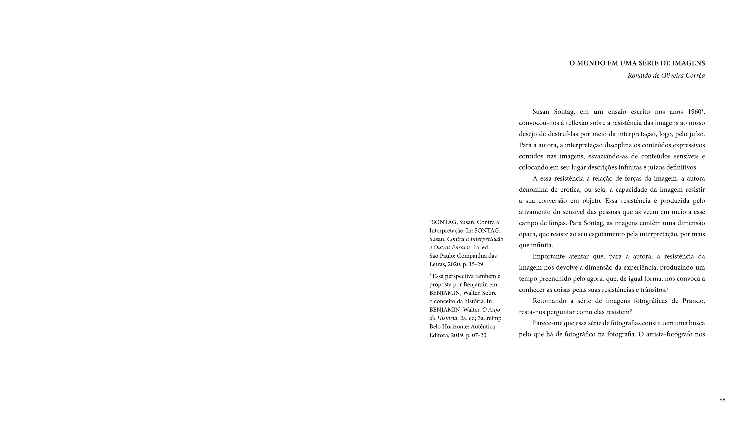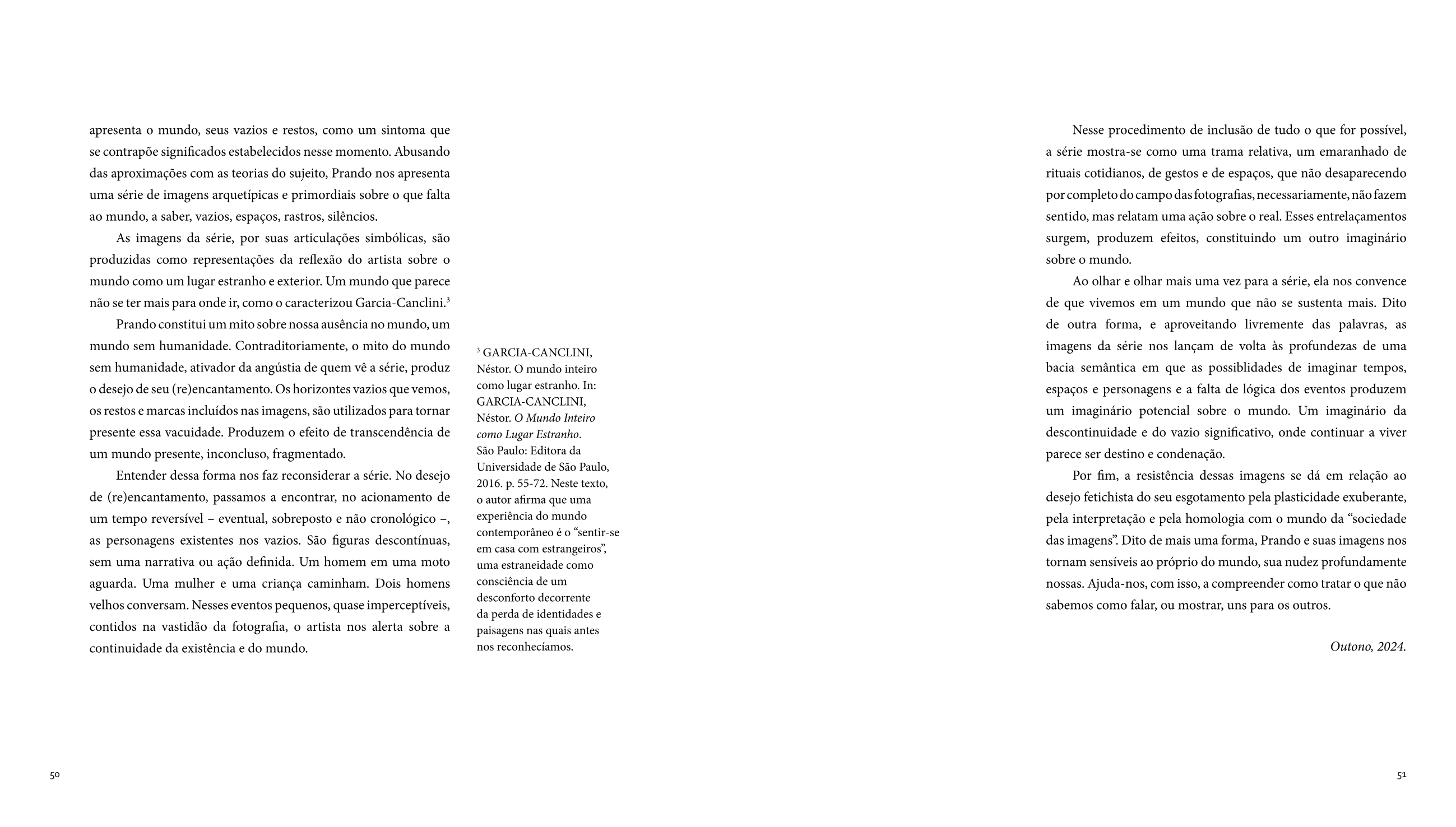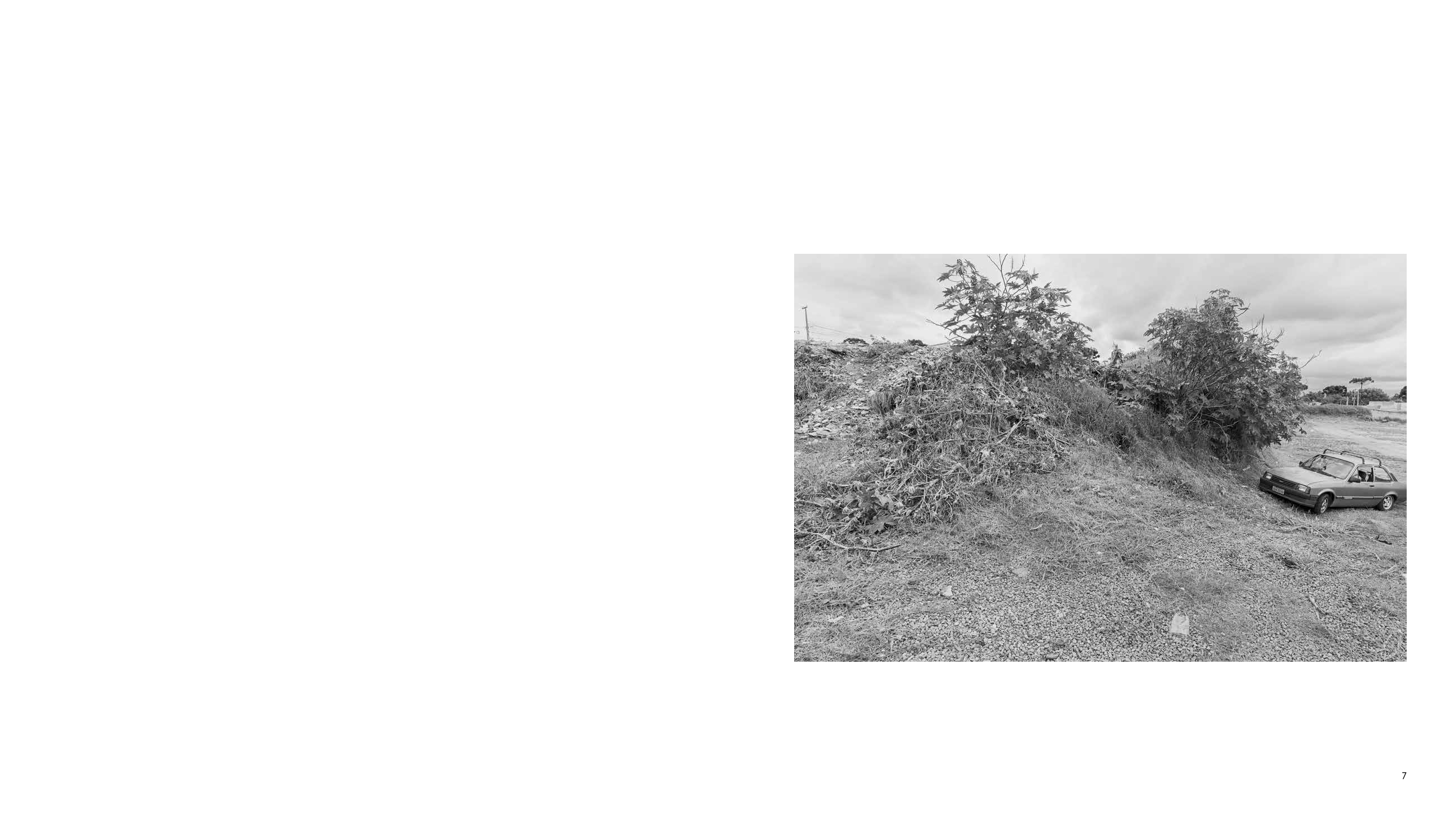 As fotografias que compõem este ensaio, realizadas nos 28Km da Estrada da Ribeira que liga as cidades de Curitiba e Colombo, propõem um olhar lento para o território como um lugar incerto e impreciso. O ensaio Registros Geológicos (2021-2023) tem o propósito de refletir sobre nossas formas de habitar, experimentar, transformar e sermos transformados pelos espaços que nos rodeiam e indagar sobre como fazer visíveis os sujeitos políticos (humanos e não humanos) desta nova paisagem que surge no século XXI.